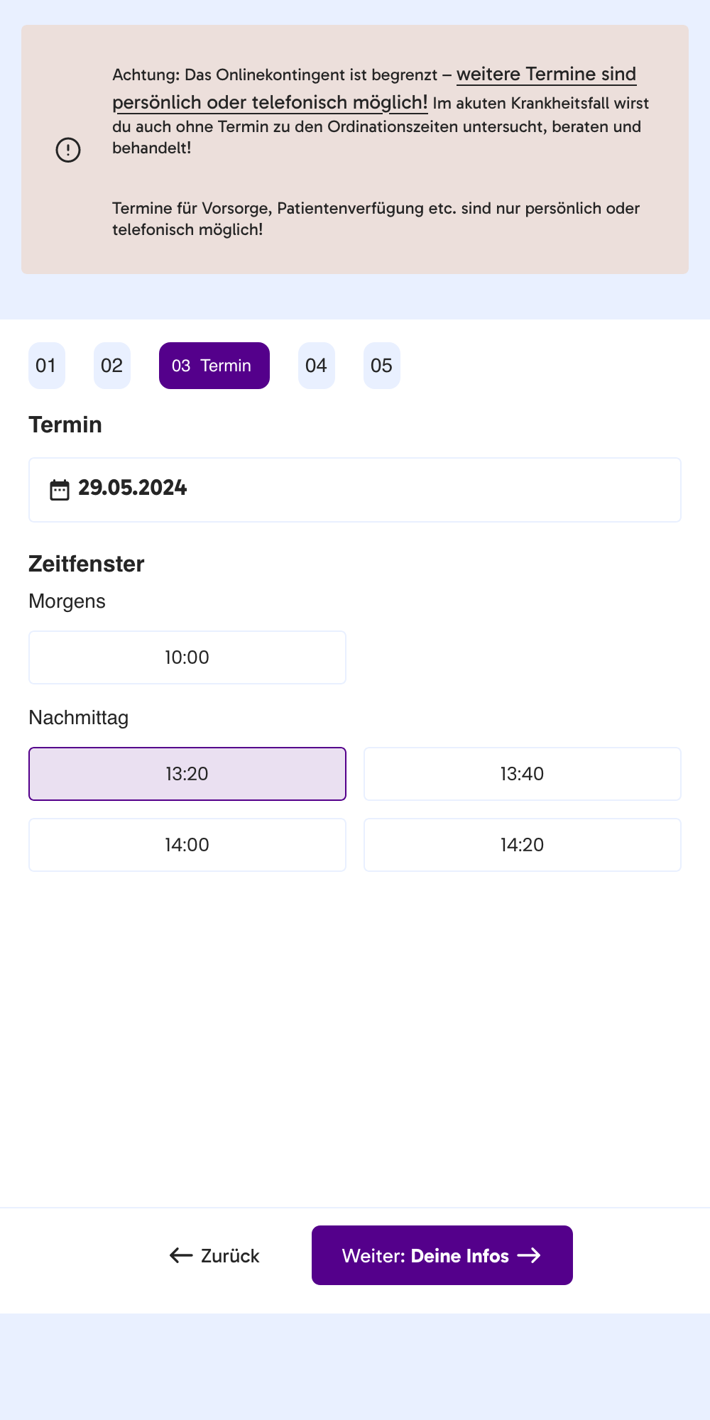 Auch Termine können ganz einfach online gebucht werden – der Kalender wird automatisch mit der Software der Praxis synchronisiert und ist somit immer Up-To-Date.