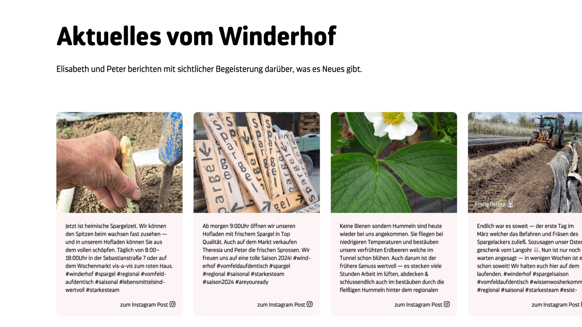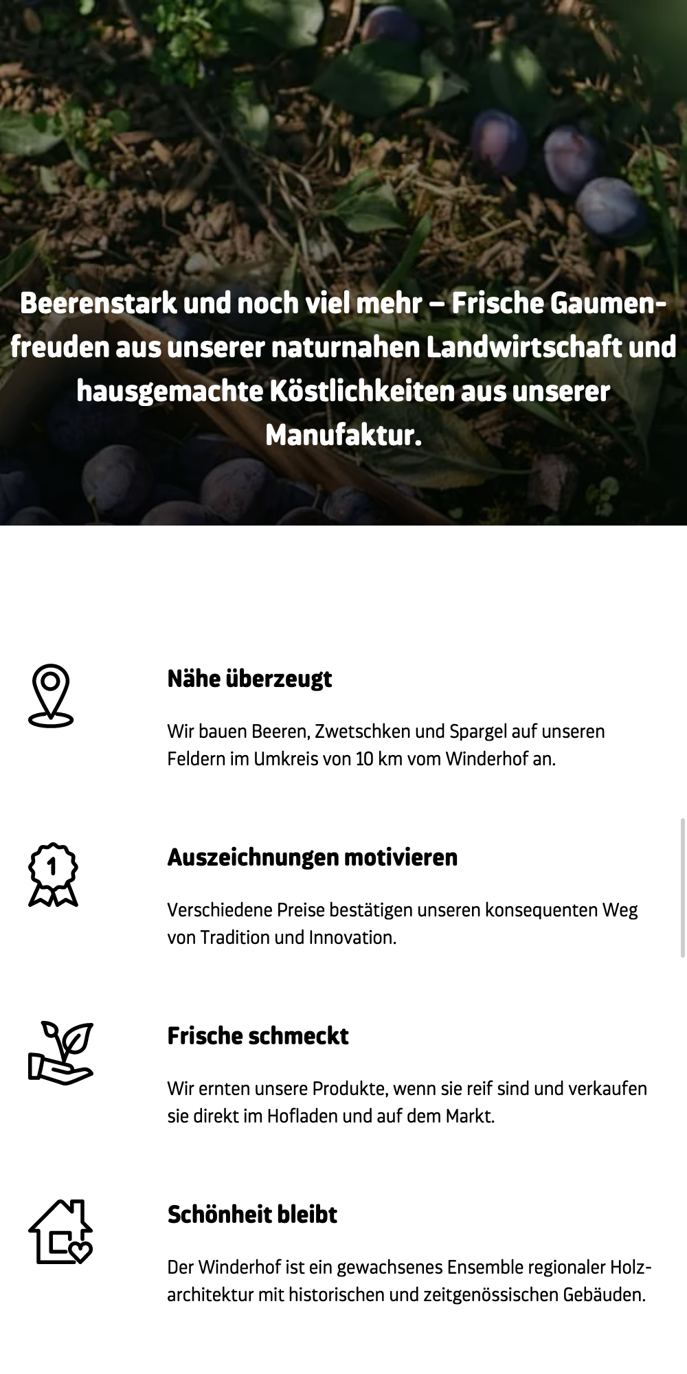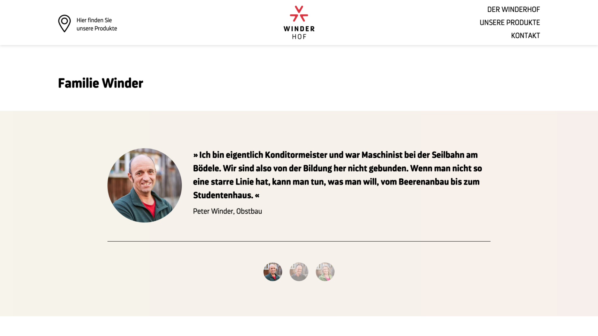 Da nur die wenigsten von uns in diesem Kreislauf der Natur leben, zeigt der Webauftritt, wann und wo es die Produkte vom Winderhof zu schmecken gibt – und vor allem wo.