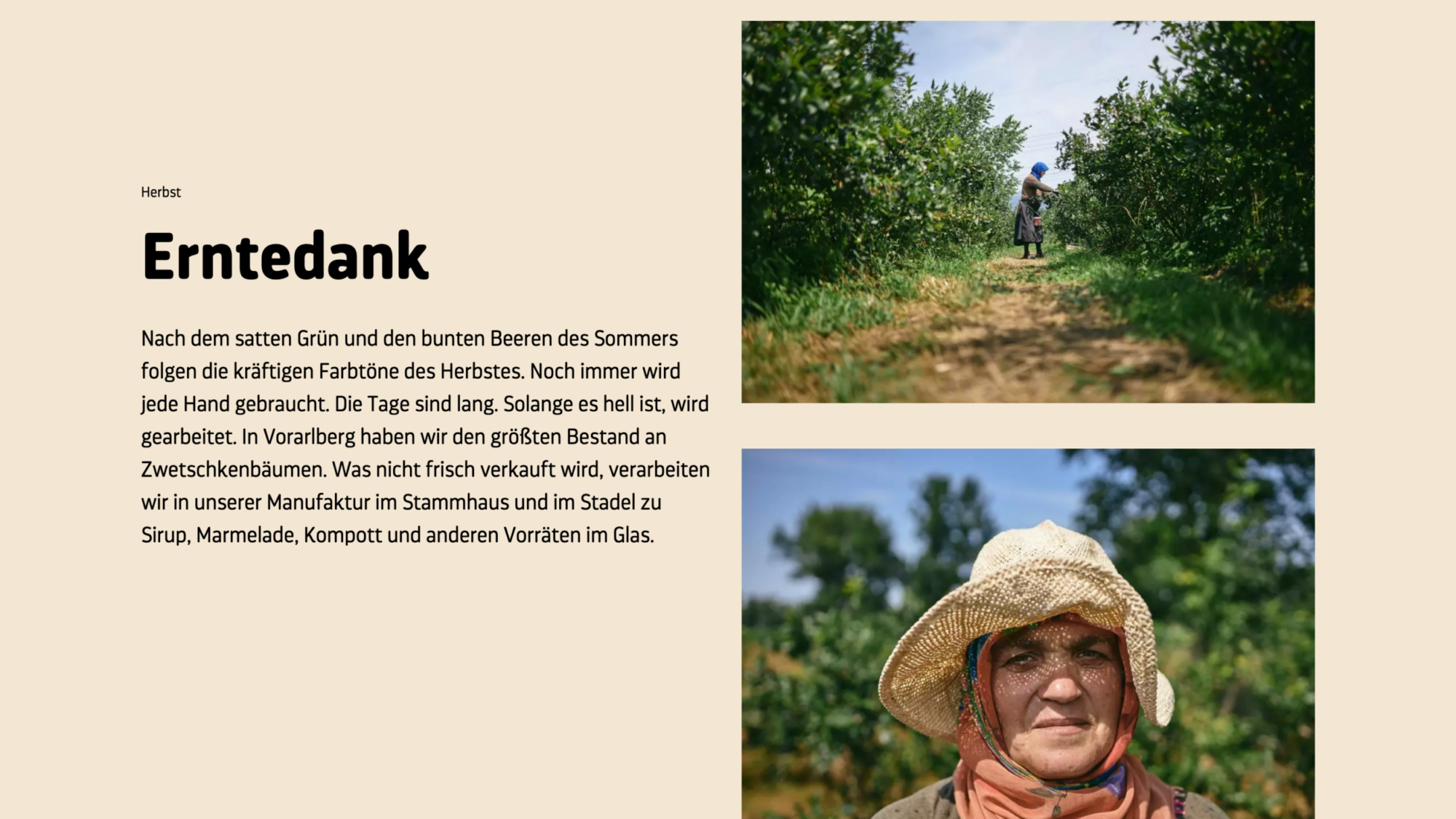 Der Webauftritt des Winderhof erzählt den landwirtschaftlichen Jahresablauf der Familie Winder. Vom Blütenrausch im Frühling bis zur Ruhezeit im Winter. Der Zyklus der Jahreszeiten gibt vor, was zu tun ist.