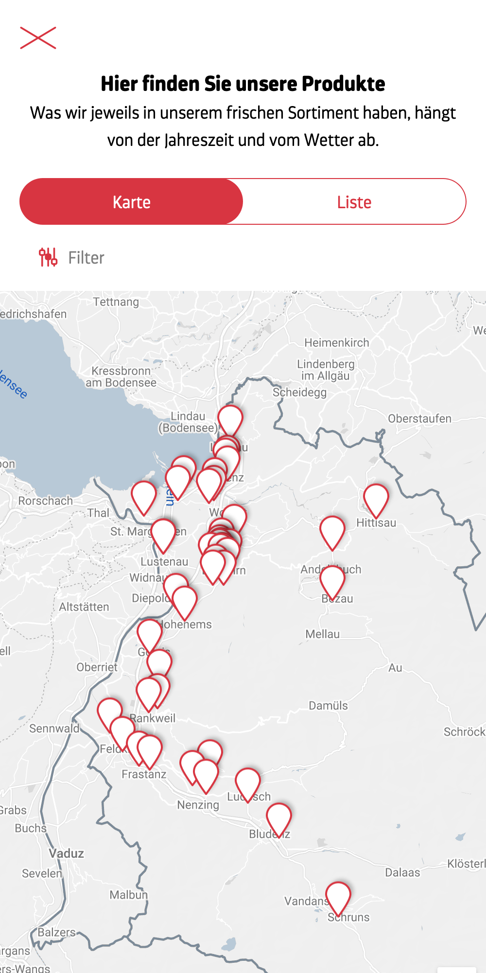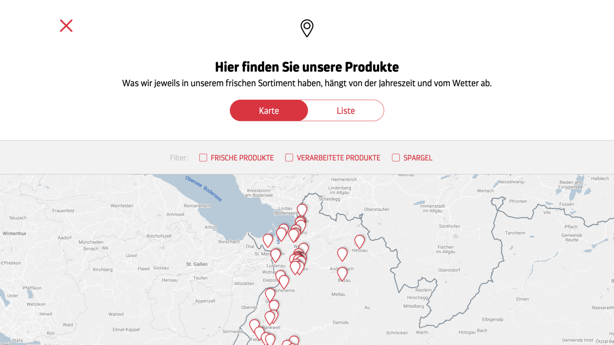 - Übersichtskarte mit allen Standorten, an denen es Winder Produkte gibt – mit Filter und Listenansicht